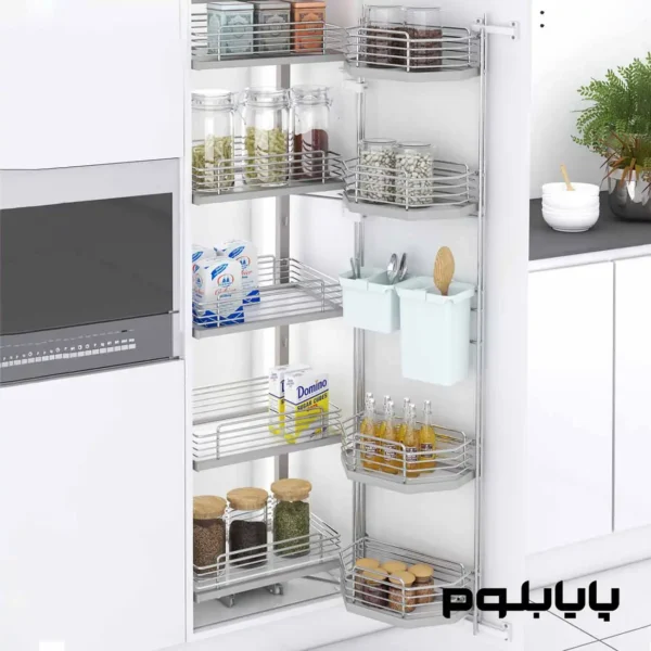 آشپزخانههای مدرن نیازمند ابزارهایی هستند که به نظم و استفاده بهینه از فضا کمک کنند. سوپر یخچالی یکی از بهترین راهحلها برای تبدیل کابینتهای بلند و عمیق به یک انبار مواد غذایی منظم و در دسترس است. اگر از گشتن به دنبال مواد غذایی در عمق کابینتها خسته شدهاید، سوپر یخچالی پرو پلاتین بهترین گزینه برای شماست. این محصول با طراحی هوشمندانه خود، به شما این امکان را میدهد که تمام محتویات کابینت را با یک حرکت ساده، به طور کامل ببینید و به آن دسترسی داشته باشید.