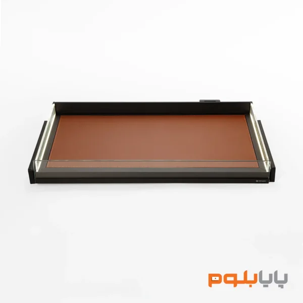 این طبقه کشویی چرمی ریلی، مخصوص داخل کمد لباس طراحی شده و مجهز به بدنه LED با نورپردازی ملایم است که علاوه بر زیبایی، دسترسی به وسایل را در تاریکی نیز آسان میکند. همچنین، مجهز به آرام بند است تا هنگام بسته شدن، صدای مزاحم ایجاد نکند و حس لوکسی به محیط ببخشد.