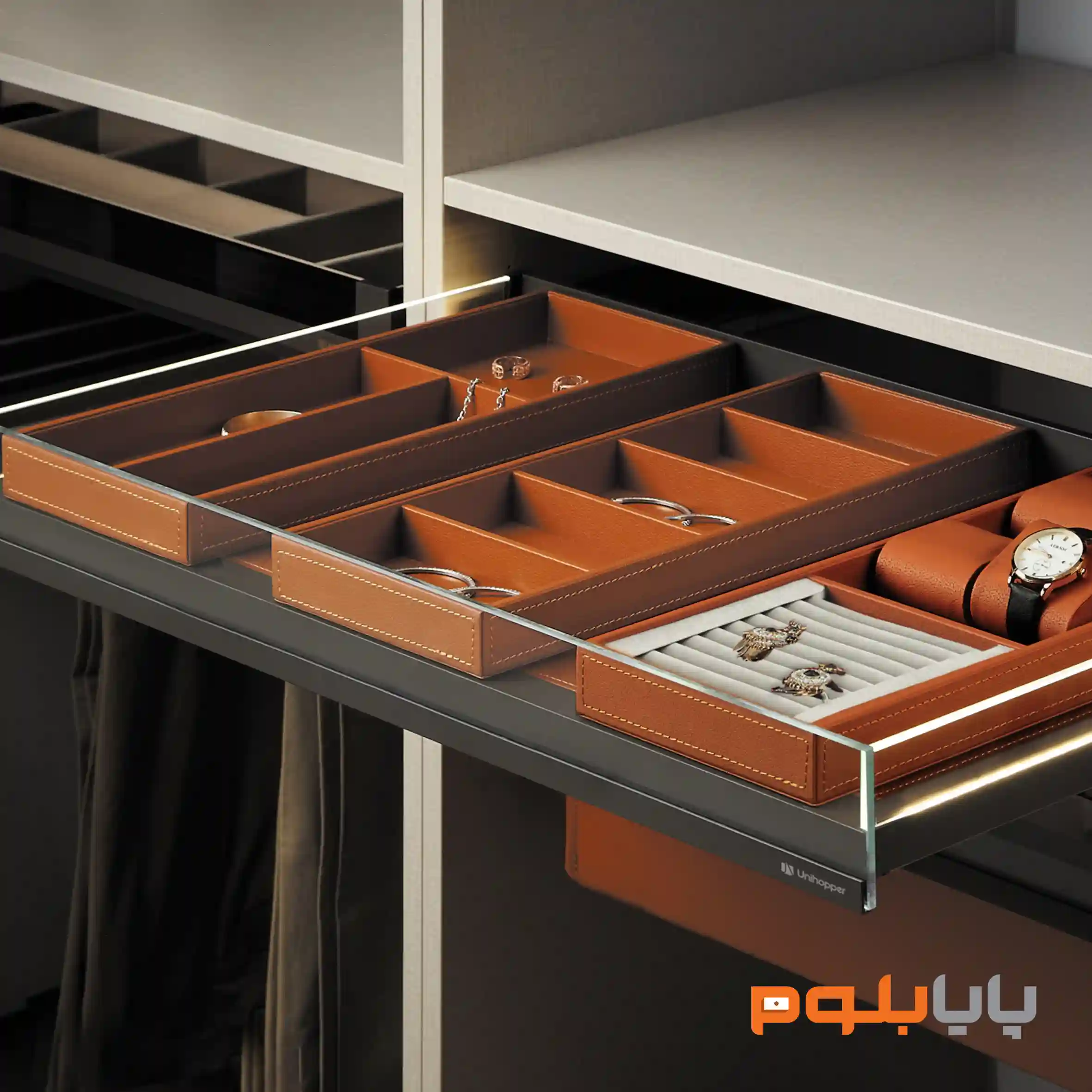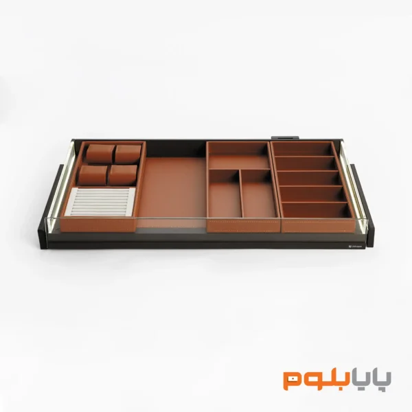 جای زیورآلات چرمی ریلی با بدنه LED، دارای آرام بند