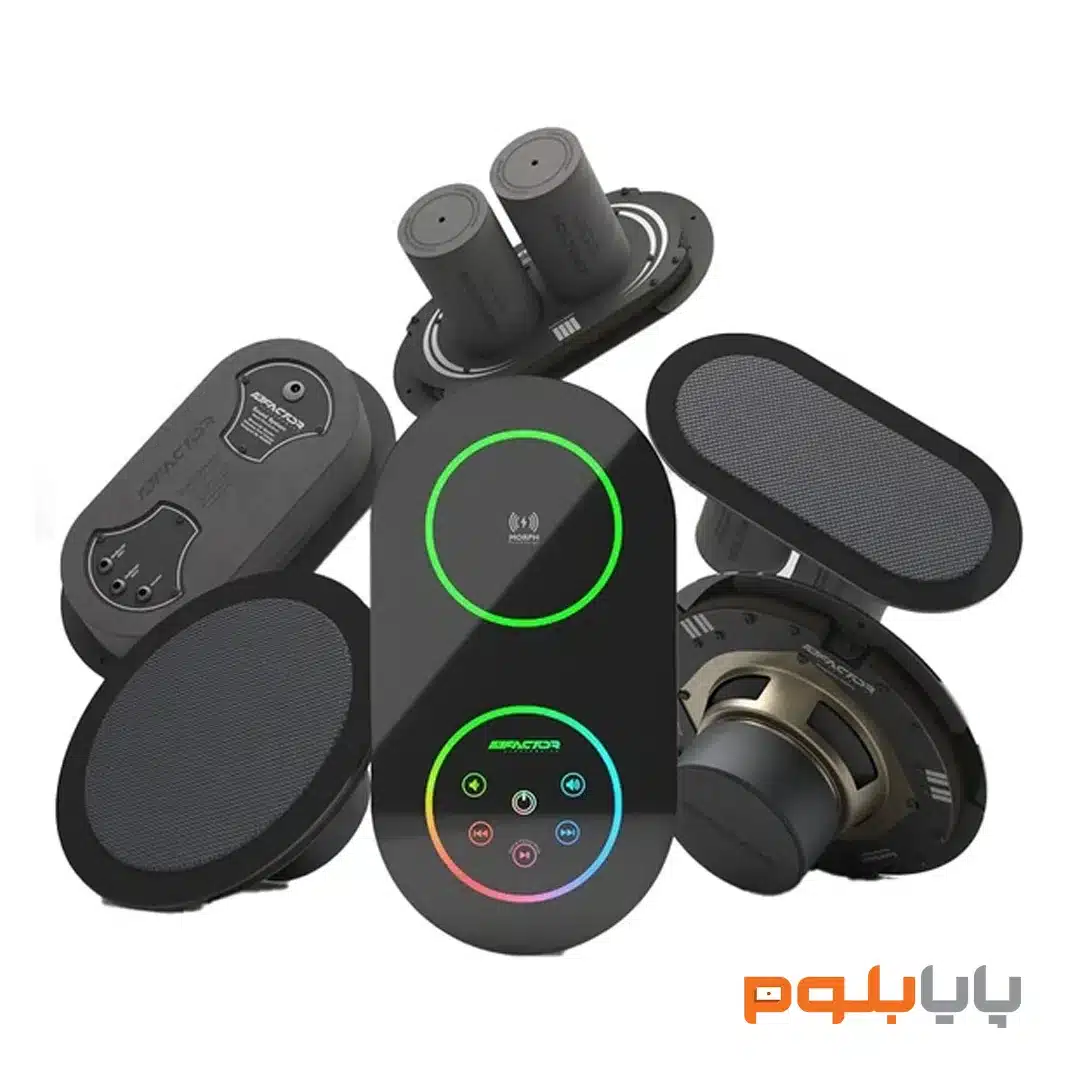 سیستم صوتی فکتور دارای سه بخش اصلی است که بخش کنترلر اصلی که وظیفه اتصال بلوتوث و کنترل موزیک به وسیله دکمه های تمام لمسی و امکان شارژ وایرلس انواع گوشی و تبلت و … را فراهم می آورد و بخش سابووفر و میدرنج که برای ارائه حداکثر کیفیت صدا می باشد.