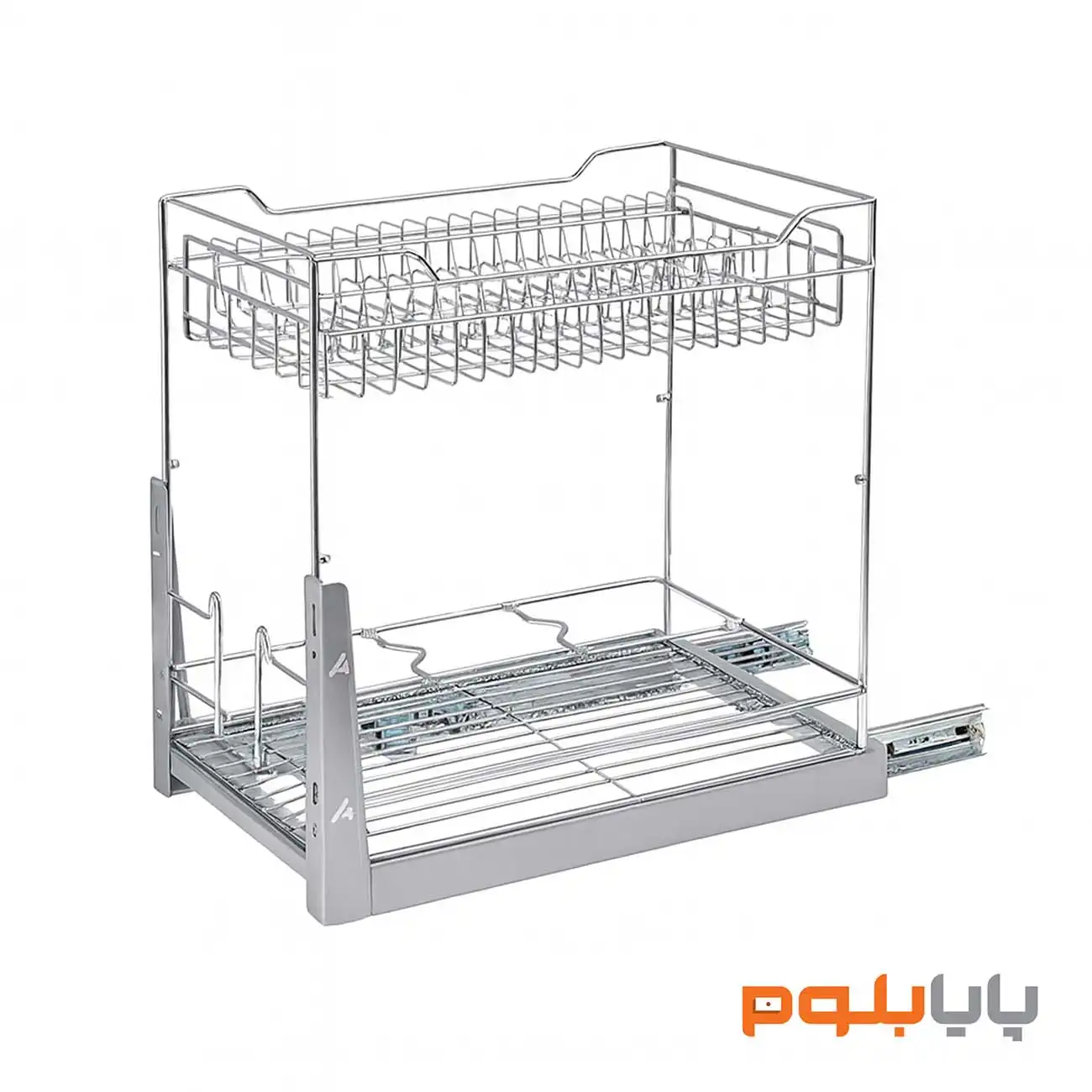 طراحی بینظیر این محصول دارای دو طبقه کاربردی است. طبقه بالا با شیارهای اختصاصی، هر بشقاب را به صورت جداگانه و ایمن در جای خود نگه میدارد. این ویژگی نه تنها دسترسی به هر ظرف را بدون جابجا کردن سایر بشقابها ممکن میسازد، بلکه از وارد شدن فشار اضافی به بدنه کابینت نیز جلوگیری میکند. طبقه پایین نیز فضای کافی برای چیدمان منظم کاسهها، پیشدستیها و یا حتی بطریها را فراهم میآورد.