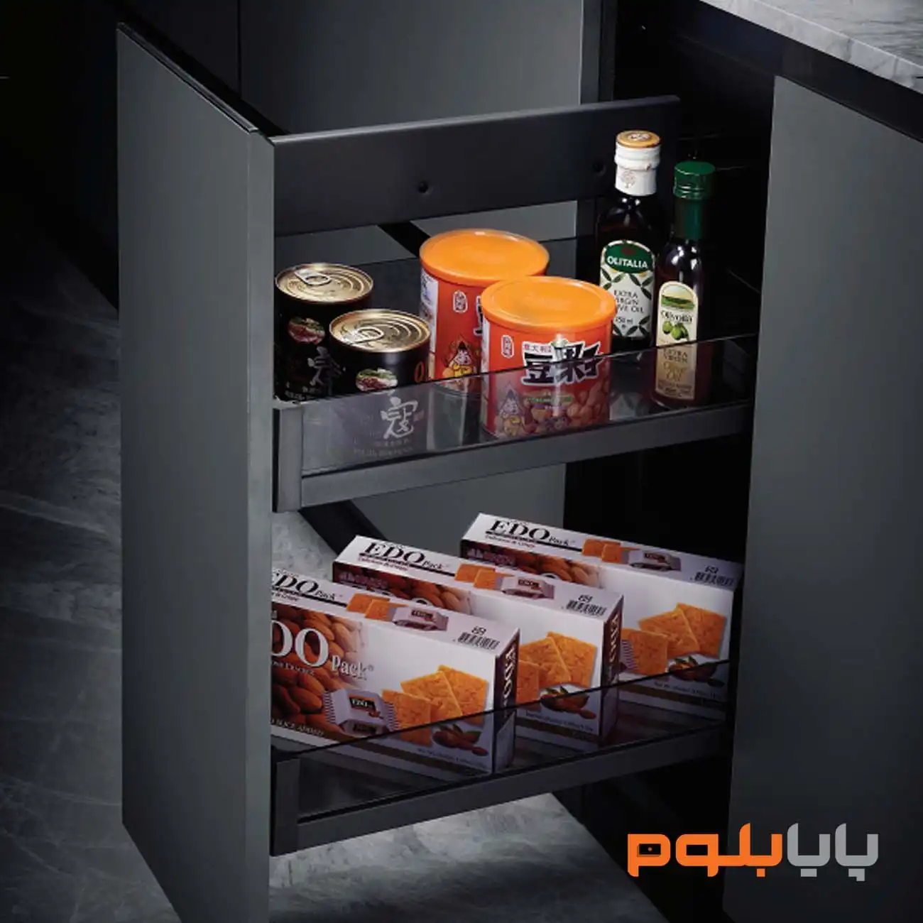 این سوپر جا بطری دو طبقه از سری کریستال، راهحلی کارآمد برای نظمدهی به بطریها و ادویهجات در فضای آشپزخانه است. سبدهای شفاف با طراحی کریستالی، علاوه بر ظاهری مدرن و زیبا، دسترسی سریع و دید کامل به محتویات داخل کابینت را امکانپذیر میکنند.