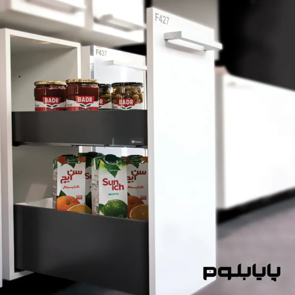 محصول سوپر جابطری 2 طبقه کوتاه و بلند اسلیم فانتونی با طراحی مدرن و کاربردی خود، فضای زیر صفحه کابینت را بهینه می‌کند. این سبد دو طبقه برای نصب در یونیت‌های با عمق‌های مختلف از ۳۰ تا ۵۰ سانتی‌متر طراحی شده است و به راحتی در اکثر کابینت‌ها قابل نصب است. ریل‌های آن از کف نصب می‌شوند و به دلیل داشتن آرام‌بند قوی و بی‌صدا، به صورت روان به بیرون و داخل حرکت کرده و دسترسی به تمامی محتویات را فراهم می‌کنند.