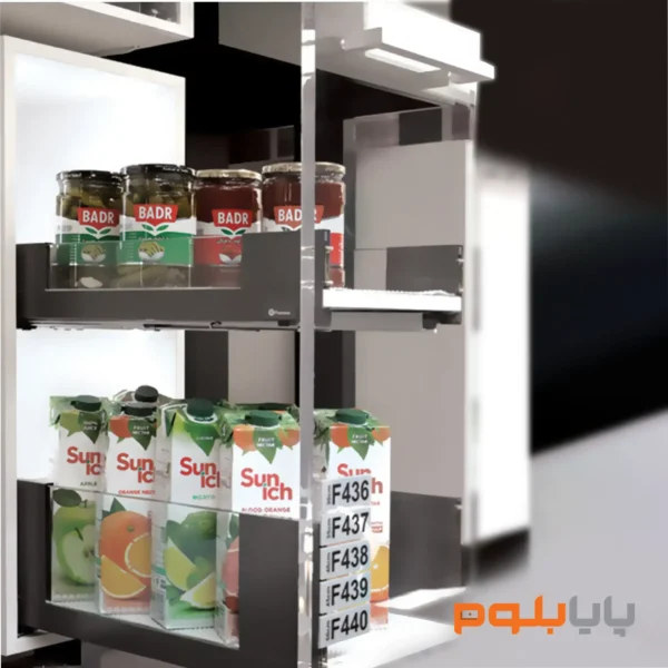 با استفاده از این سوپر، بطریها، ظروف ادویه و سایر اقلام کوچک به صورت منظم و عمودی قرار میگیرند و از ریختوپاش و آسیب دیدن آنها جلوگیری میشود.