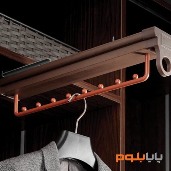 • این محصول بر روی ریل در وسط سقف کمد دیواری نصب شده و به راحتی و با حرکتی نرم به طرف شما کشیده می‌شود به‌گونه‌ای که تمامی لباس‌ها در نمایی واضح در اختیار شما قرار می‌گیرد.