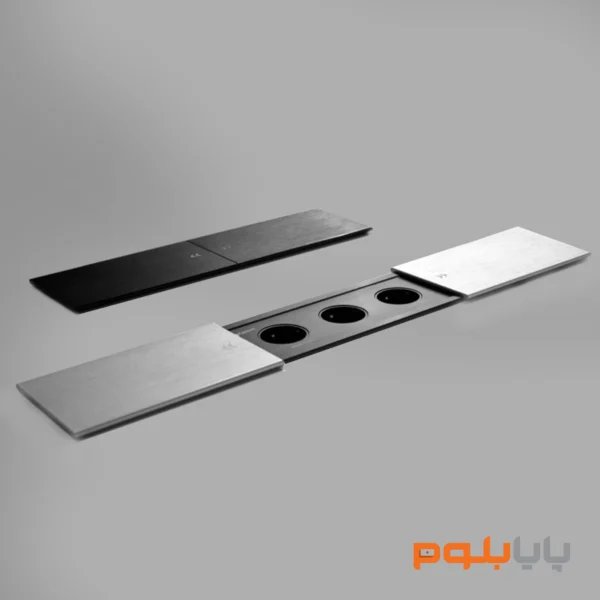 پریز برق کشویی فانتونی از جنس آلومینیوم و به رنگ نقره‌ای بوده و دارای سه پریز برق است.