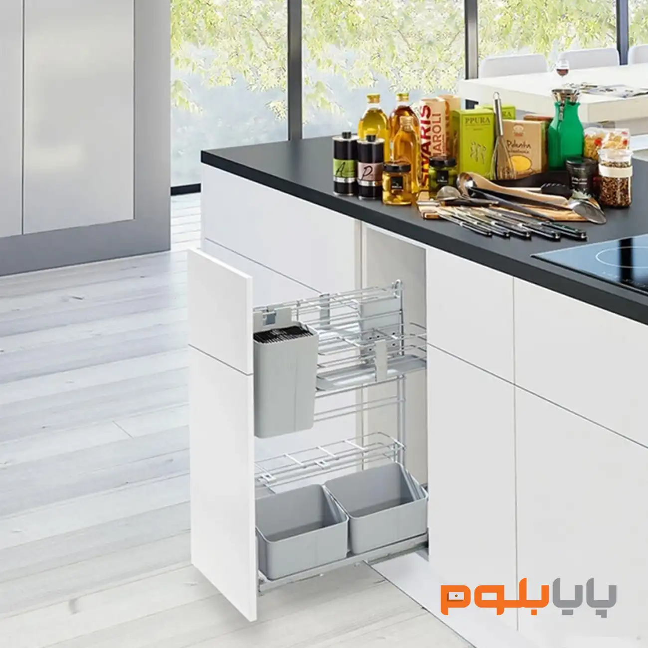 کوکینگ ایجنت جا برای همه چیز دارد. از ادویه، روغن و انواع سس گرفته تا تخته گوشت، کارد، چنگال و حتی کاسه و بشقاب. هر چیزی که برای آشپزی احتیاج دارید، در دسترس شماست. این سبد به صورت کامل از کابینت بیرون آمده و تمامی لوازم آن در اختیار شما قرار میگیرد. کوکینگ ایجنت حرکتی بسیار نرم و راحت دارد و به وسیلهی قابلیت سافتاستاپ، به آرامی بسته میشود.