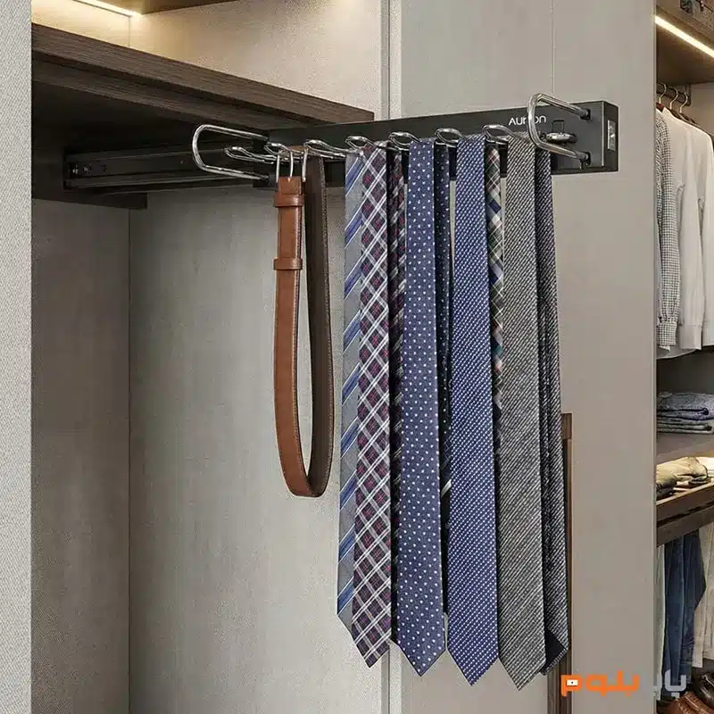 در طراحی نوین کمد دیواری و اتاق لباس (Closet Room)، بهرهگیری از اکسسوریهای مکانیزه جهت مدیریت فضا و سهولت دسترسی، امری اجتنابناپذیر است. جا کراواتی ریلی پلاتین مدل 9281، به عنوان یکی از کارآمدترین تجهیزات نظمدهنده، با هدف بهینهسازی فضای داخلی کمد و حفاظت از ساختار ظریف کراواتها، شالها و کمربندها طراحی و تولید شده است.